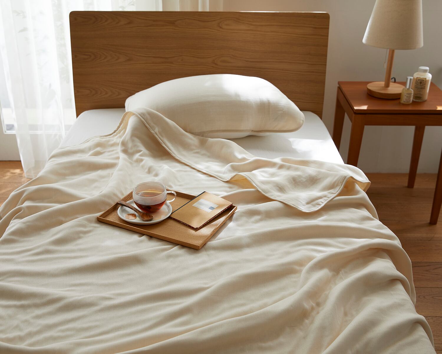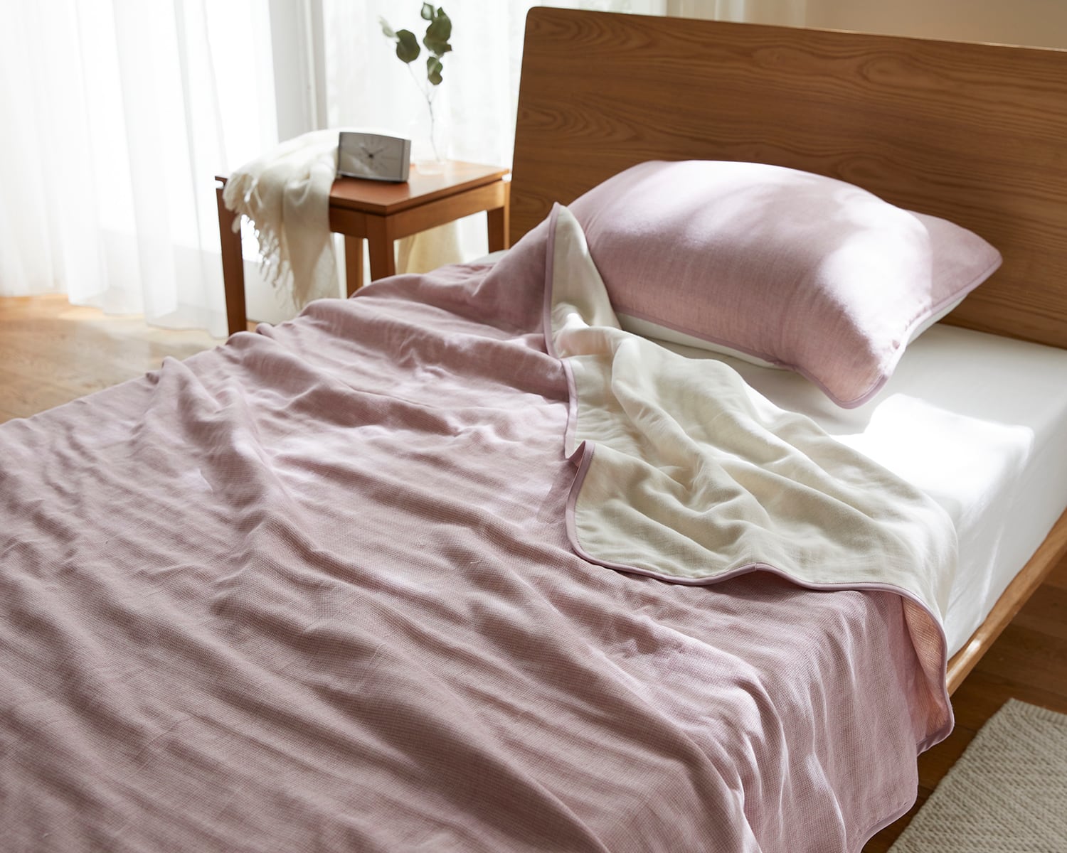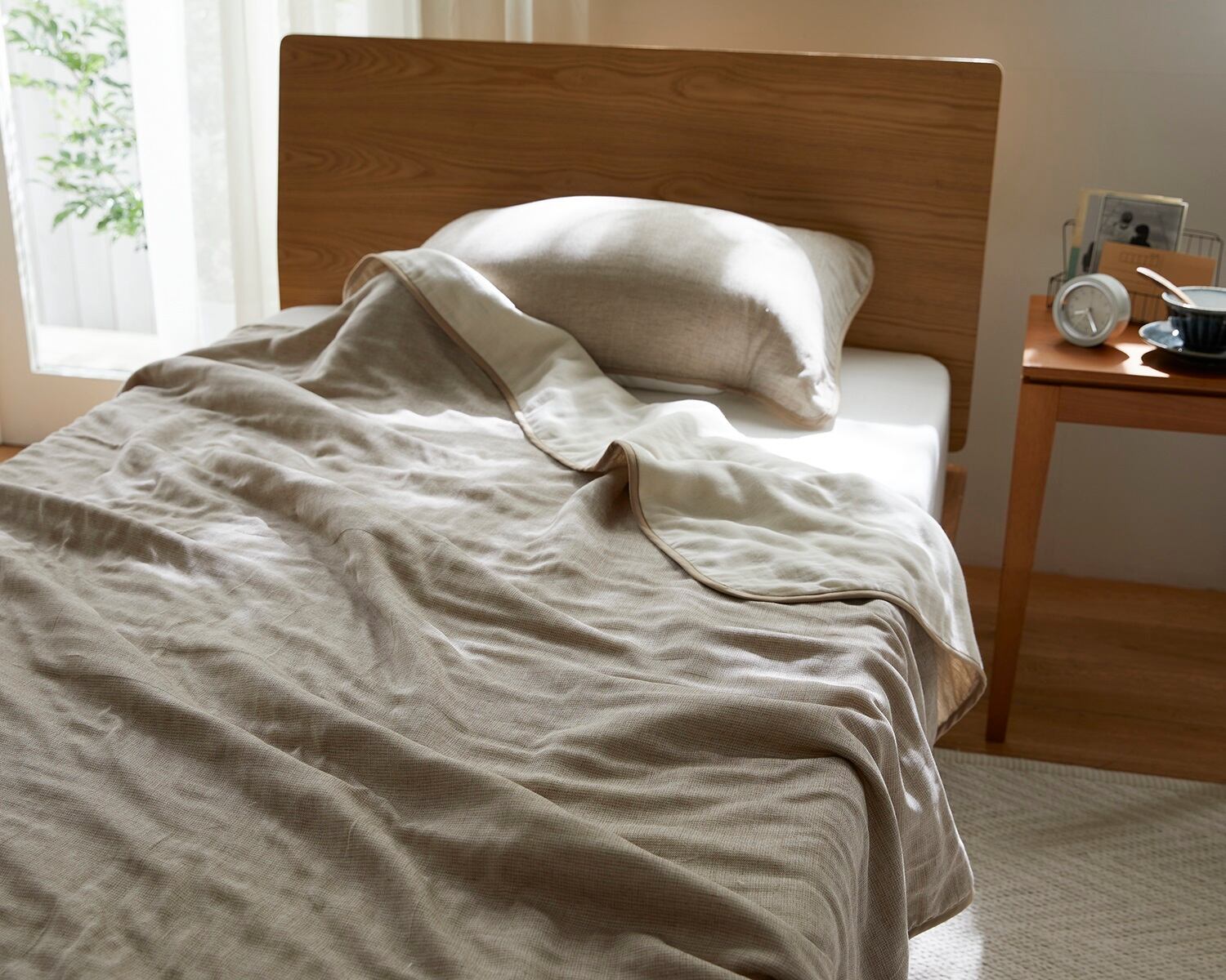 1枚でもお布団と重ねても、季節を問わず大活躍のシングルケットです。厚い時には汗を吸湿、発散してくれる上、寒いときには保湿してくれるのでずっと快適!
